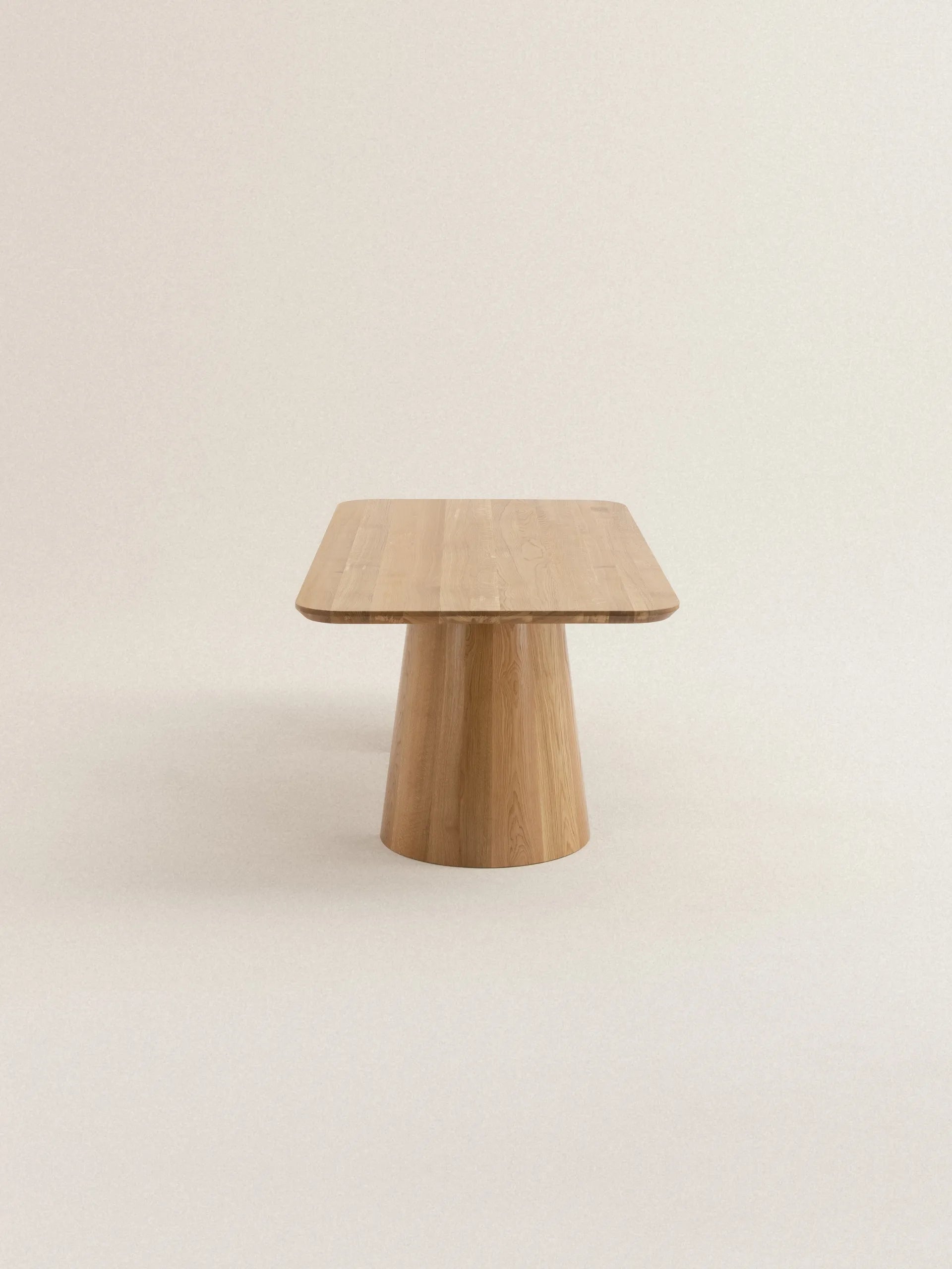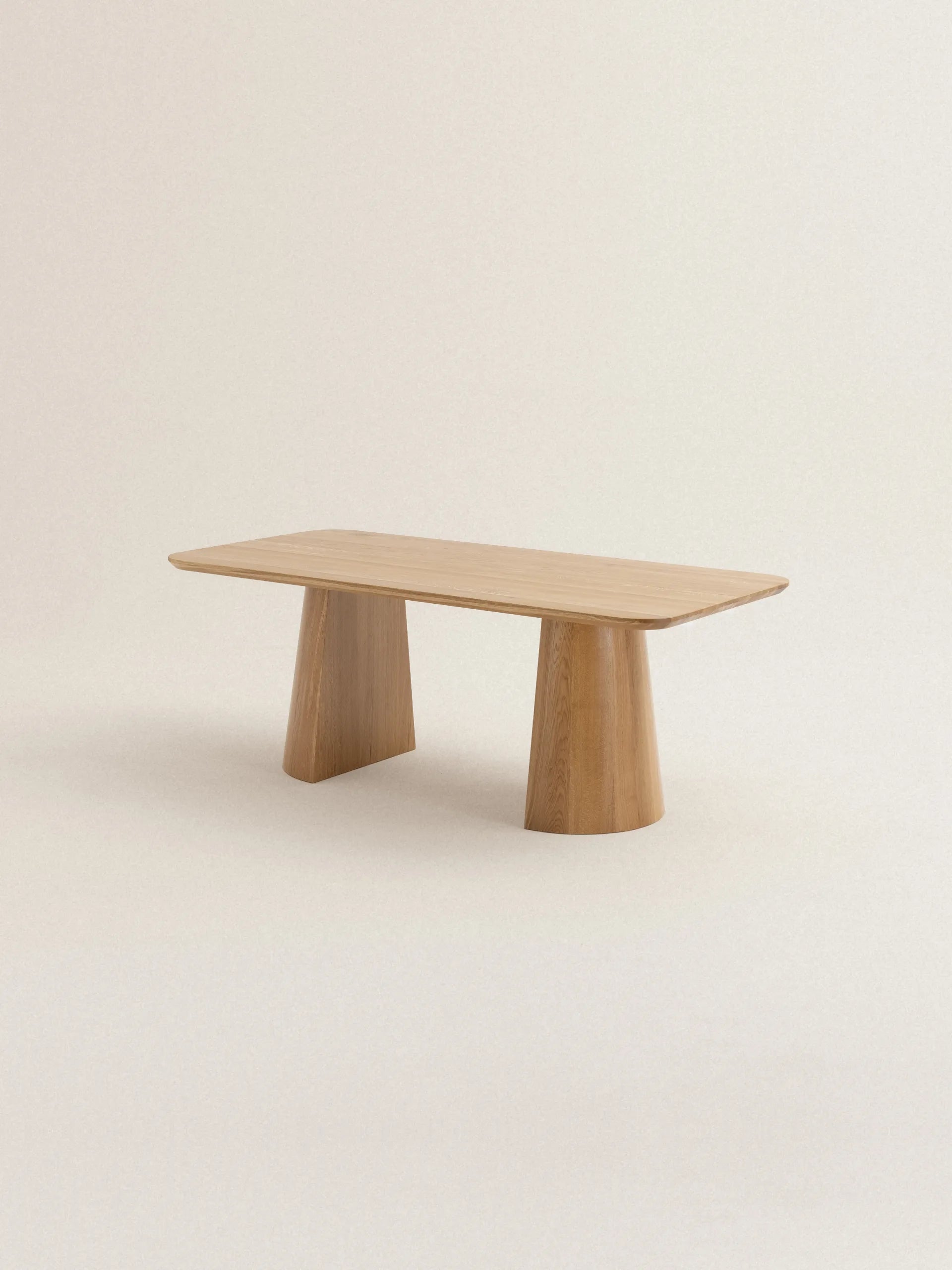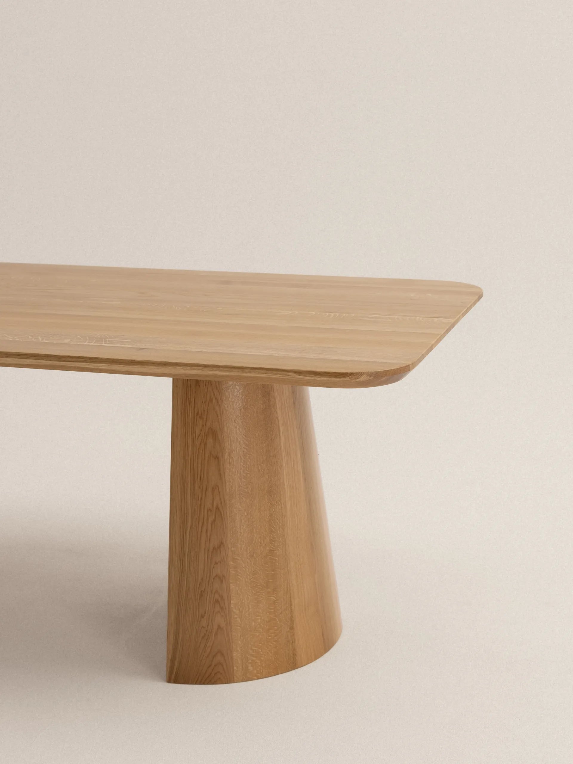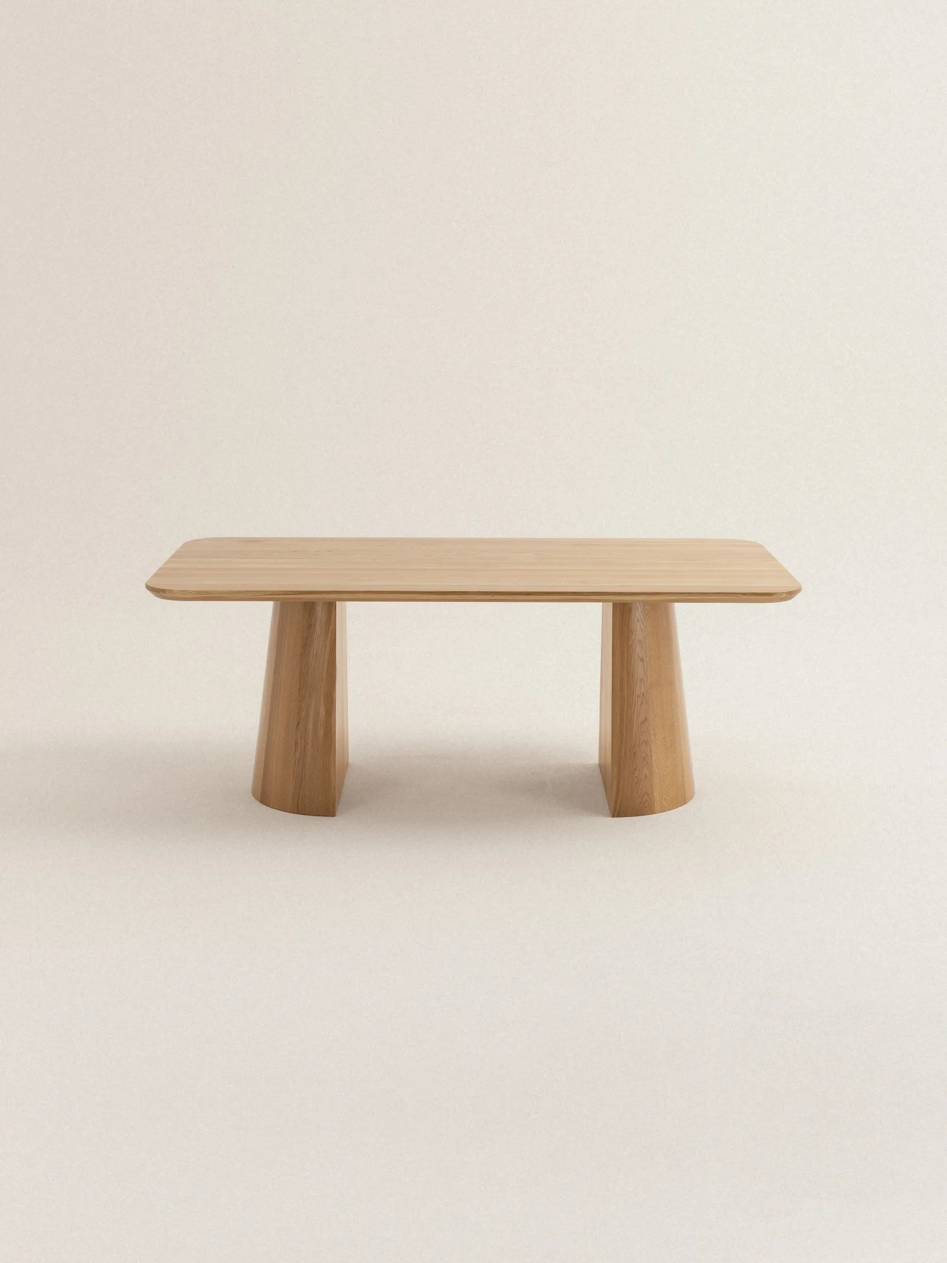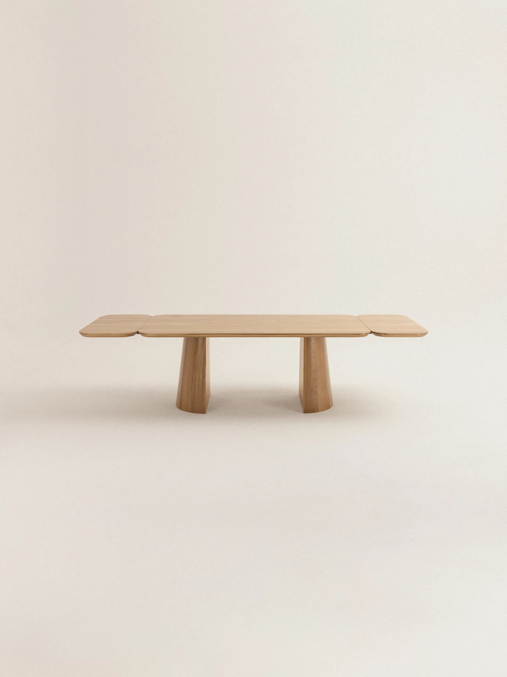 Amparo to stół, który staje się centrum domu – miejscem rozmów, wspólnych posiłków i cichego poranka z kawą. Jego solidna podstawa nadaje wnętrzu stabilności i spokoju, a delikatnie zaokrąglony blat sprawia, że forma nabiera miękkości i lekkości.