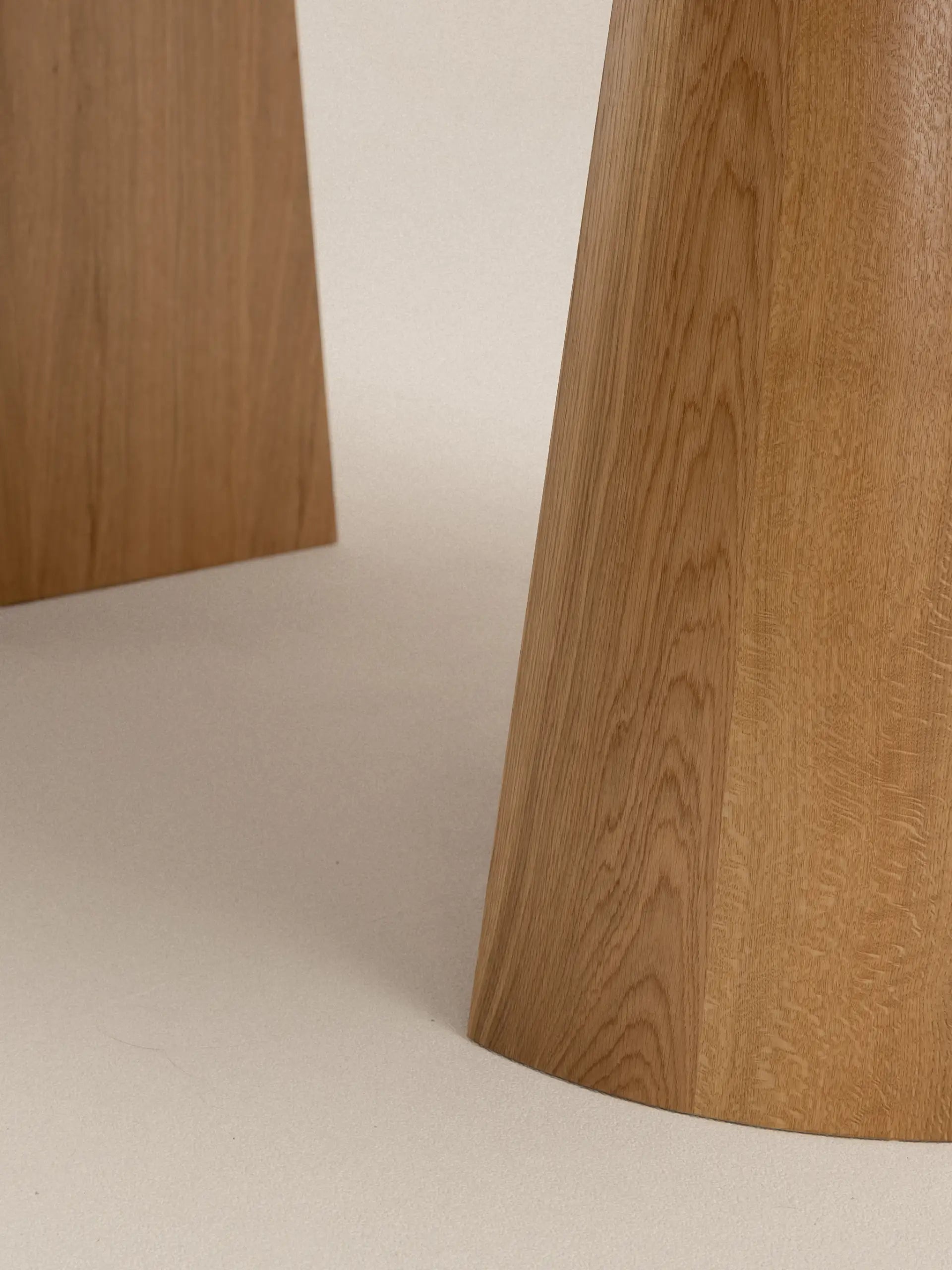 Stożki to fornir dębowy (Amparo) – gładkie, ciepłe pod palcami, z charakterem drewna, które pamięta lata.