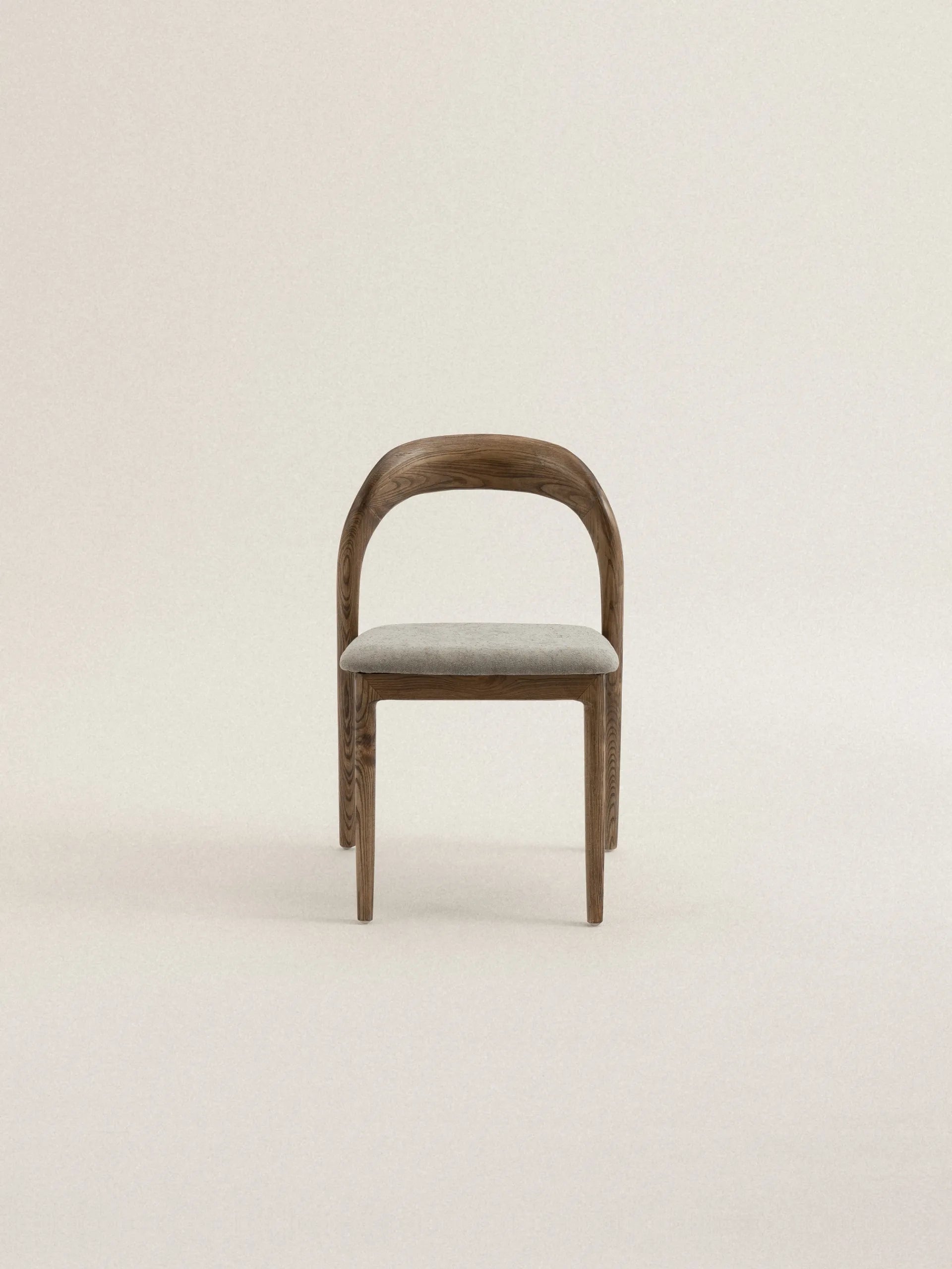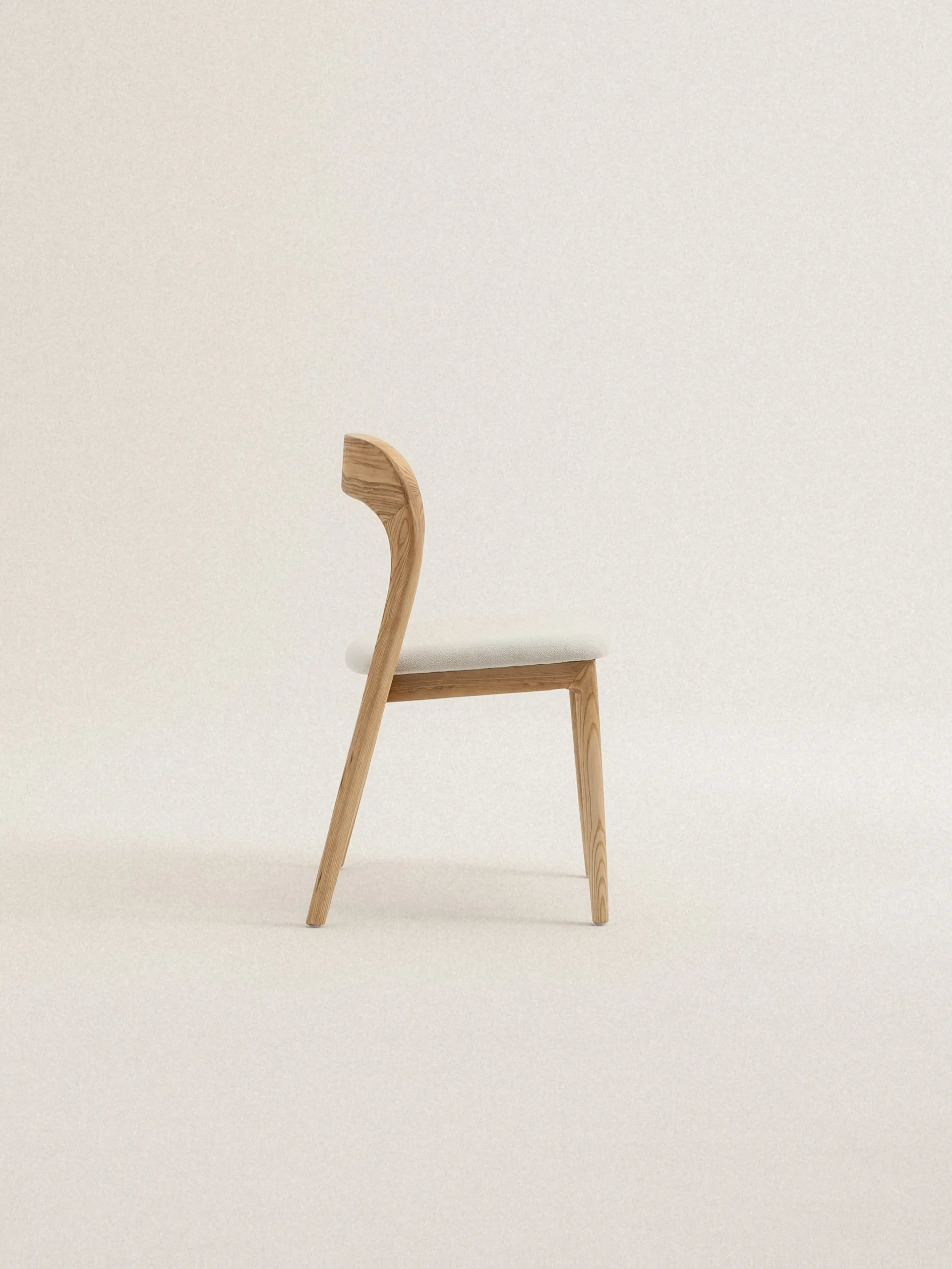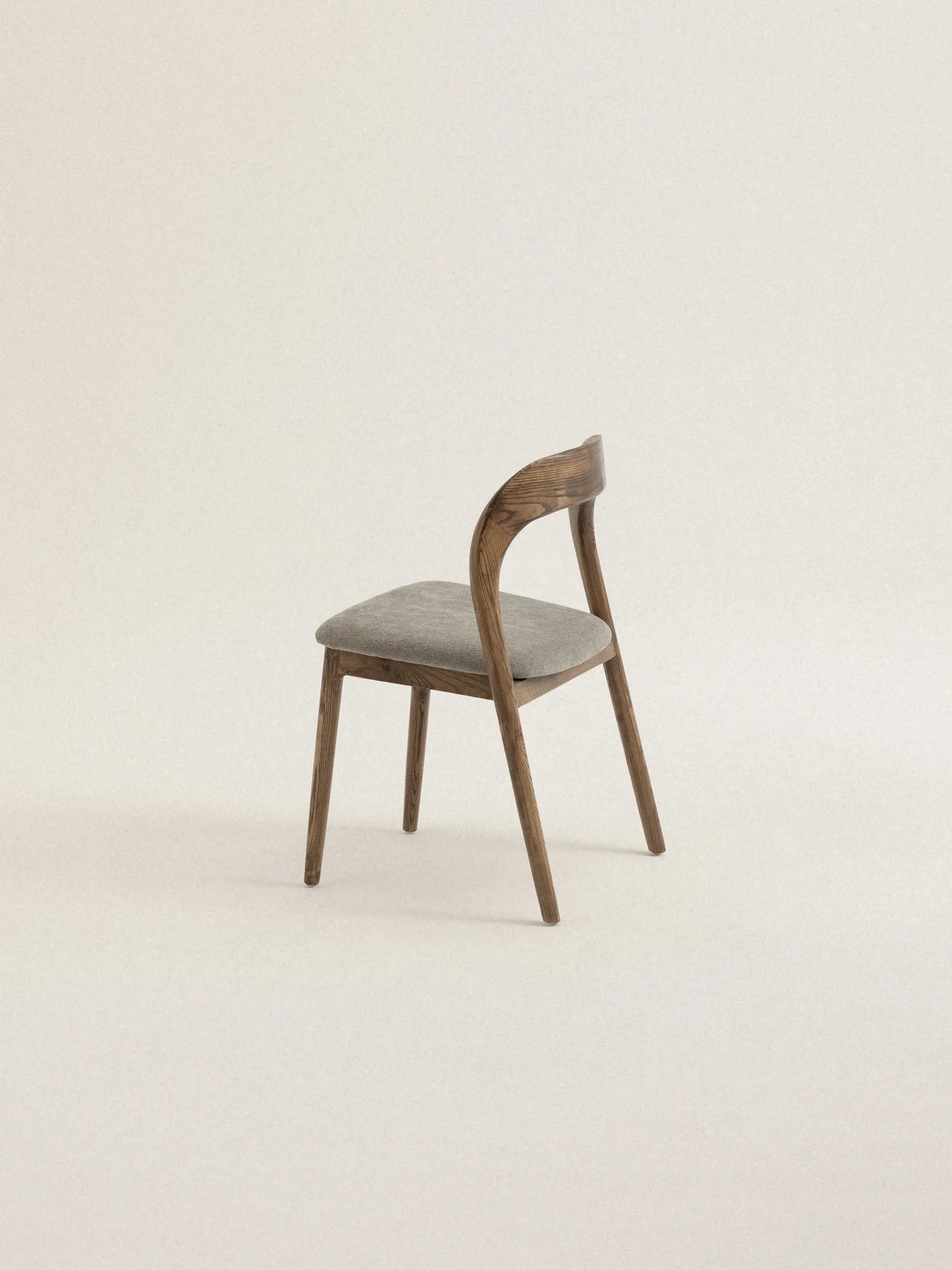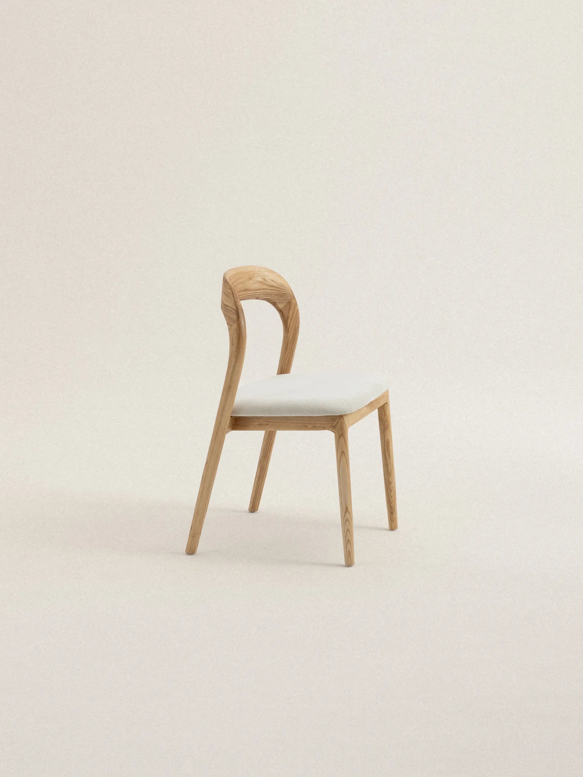 Lenta to krzesło, które mówi językiem płynnych linii i naturalnego ciepła. Drewniana rama o organicznej formie otula miękkie, tapicerowane siedzisko, tworząc harmonię między strukturą a komfortem. Każda zakrzywiona linia wydaje się być wyrzeźbiona z myślą o ciele, które ma w niej spocząć – ergonomia spotyka się tutaj z poetyką formy.