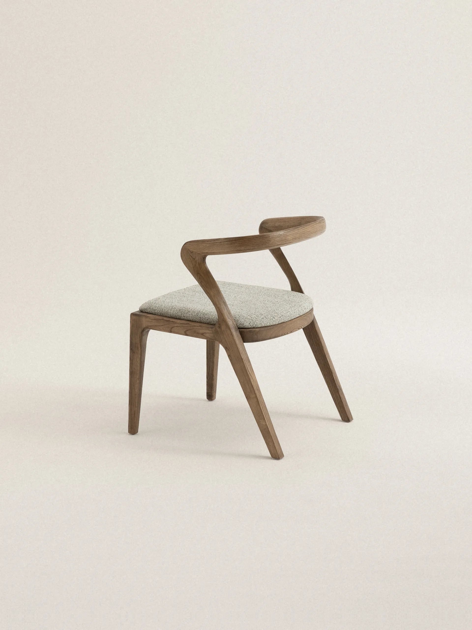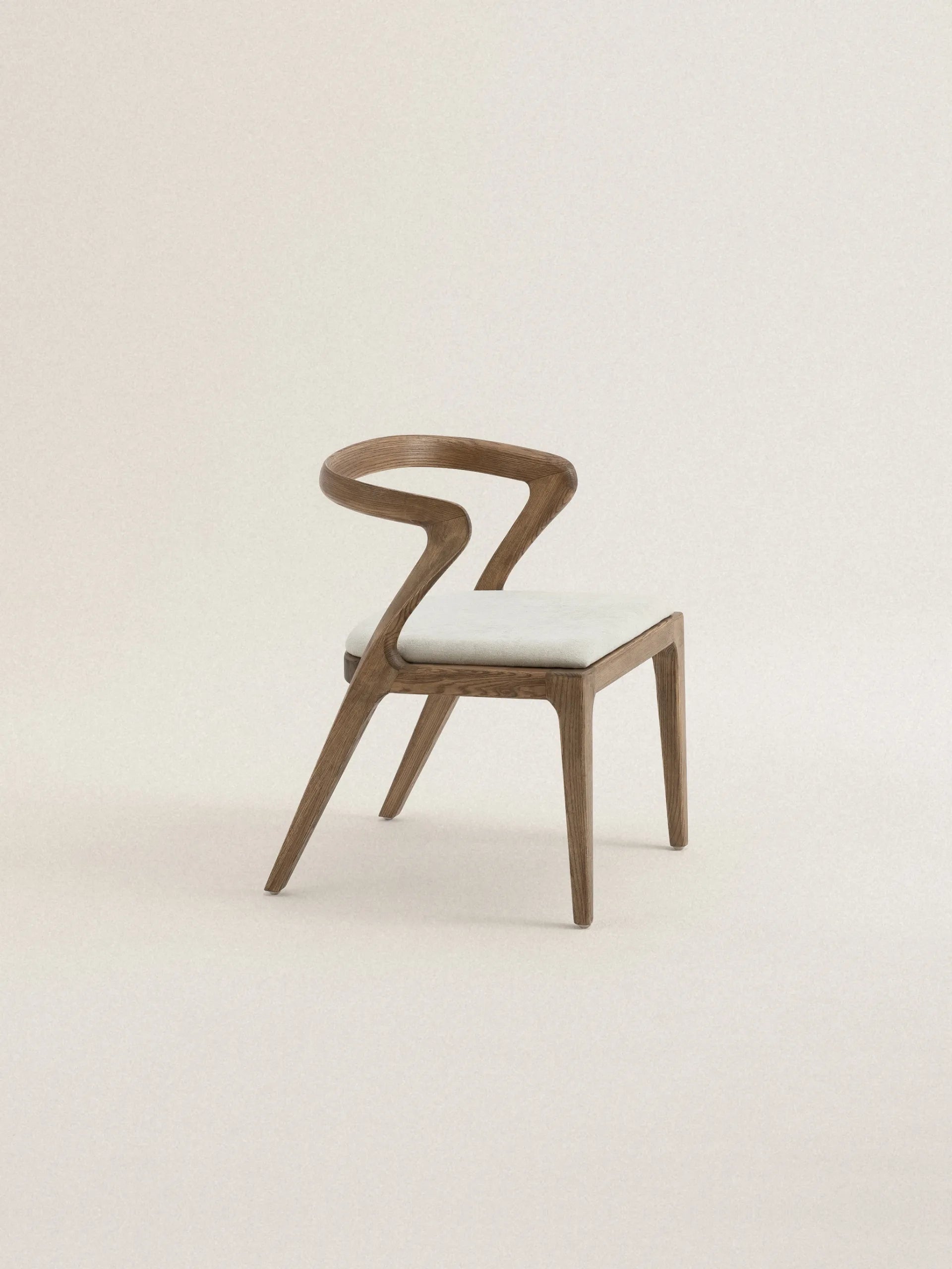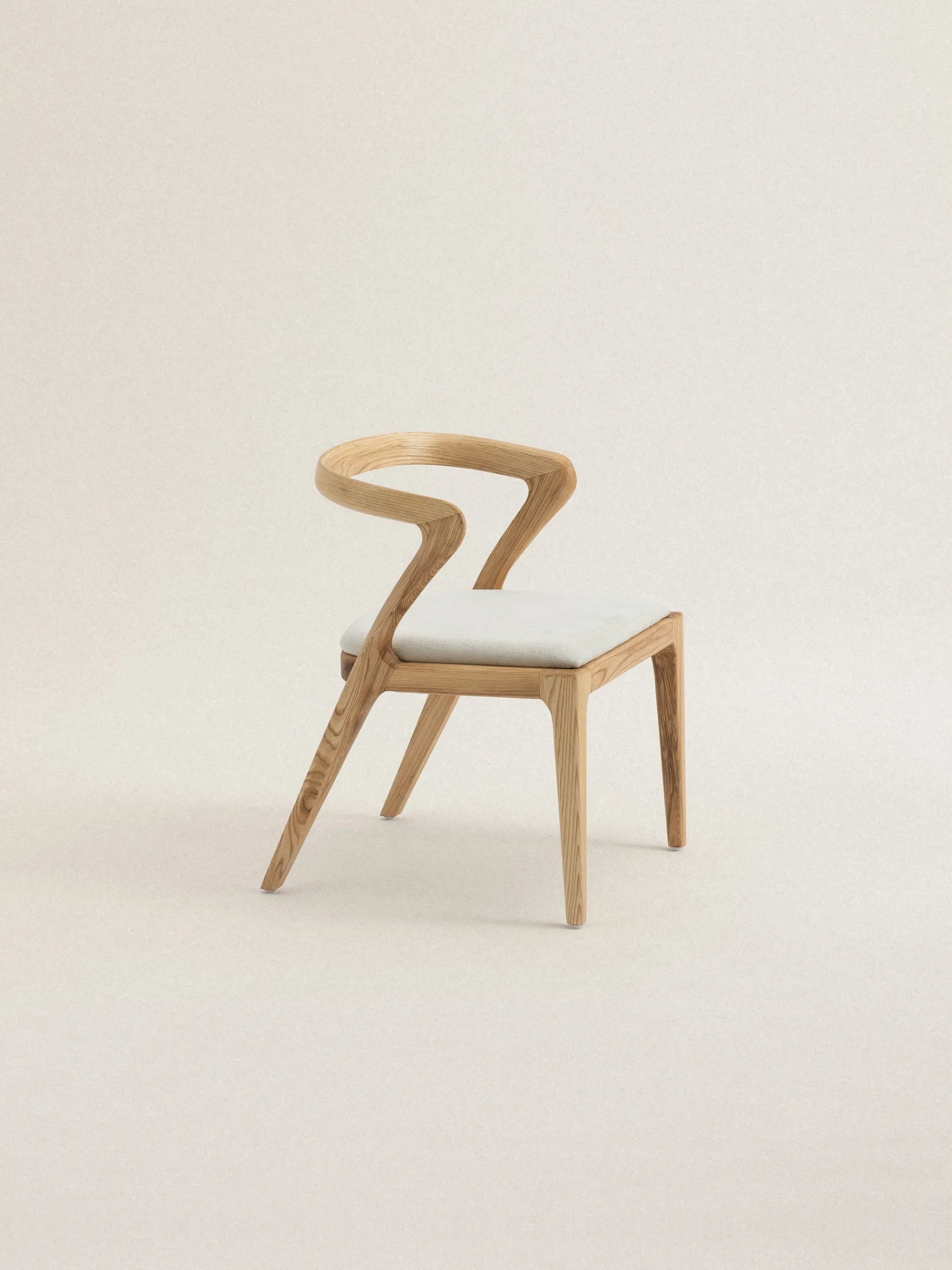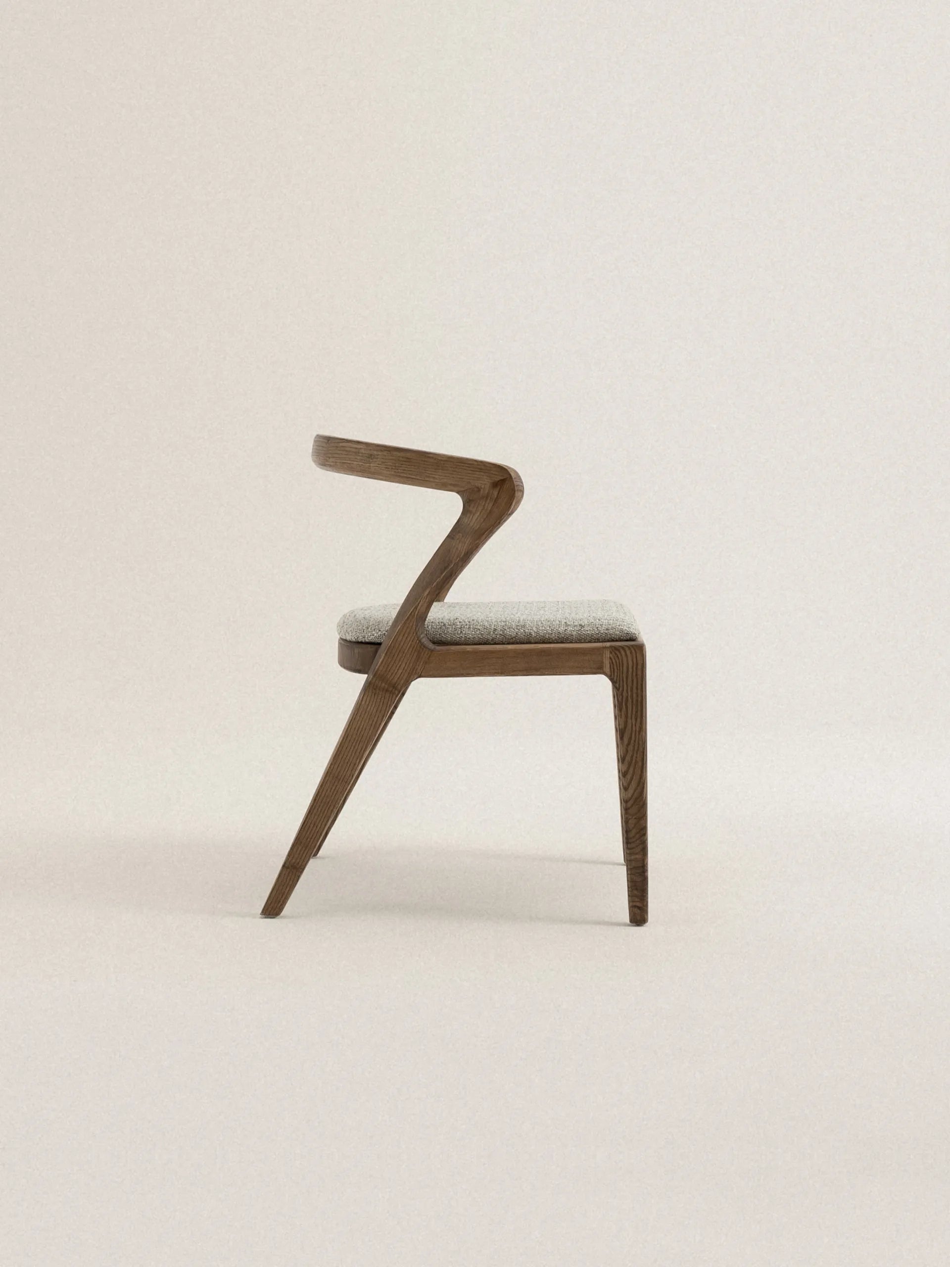 Vesna to krzesło, które definiuje przestrzeń swoją charakterystyczną sylwetką. Drewniane oparcie o asymetrycznej formie tworzy wyrazisty kontrast z miękkim, tapicerowanym siedziskiem, a cała kompozycja przypomina spontaniczny gest zatrzymany w drewnie. Każda linia wydaje się być wyrzeźbiona z myślą o ergonomii, ale też o estetycznej ekspresji – to mebel, który równie dobrze służy ciału, co oku.