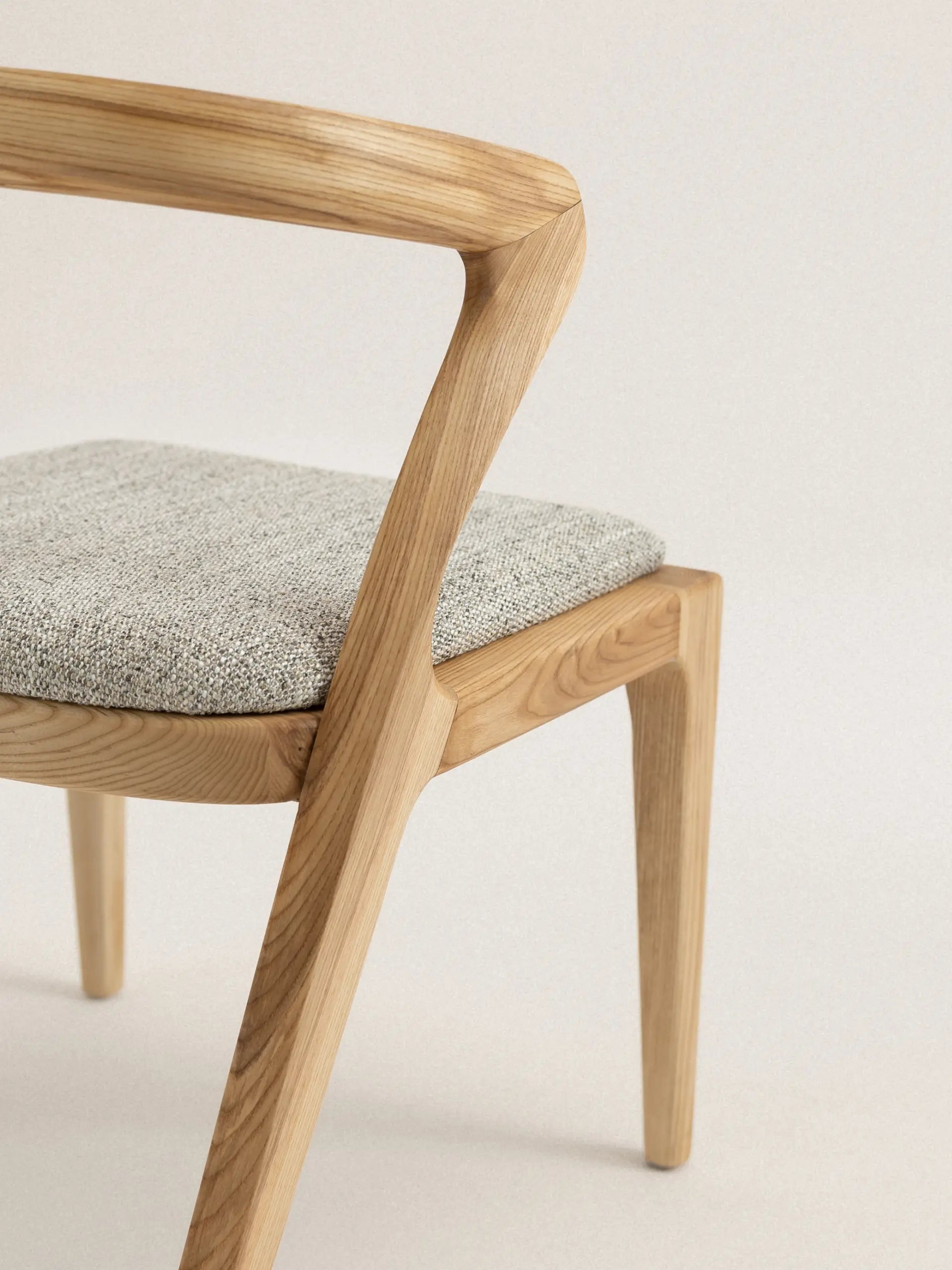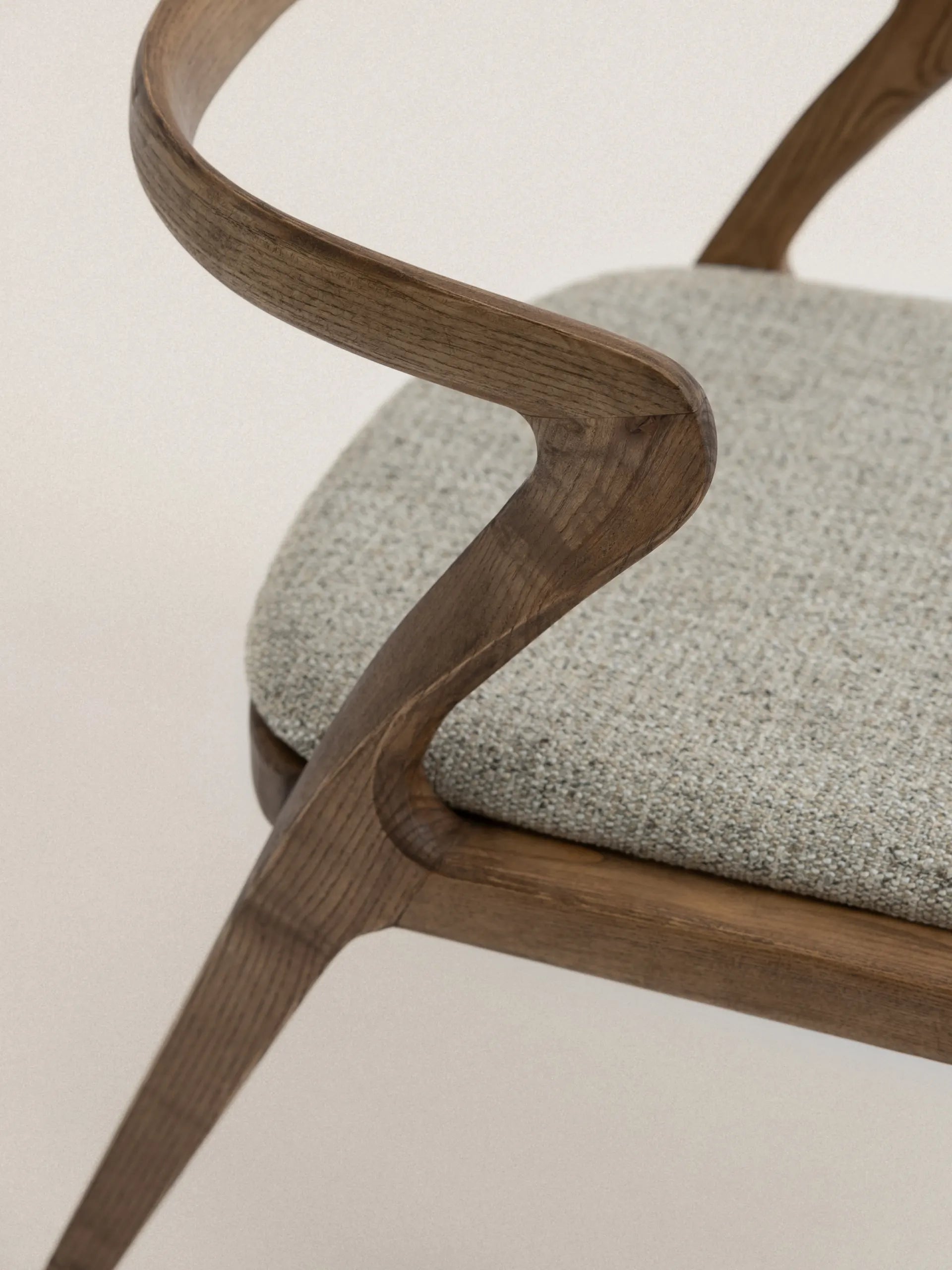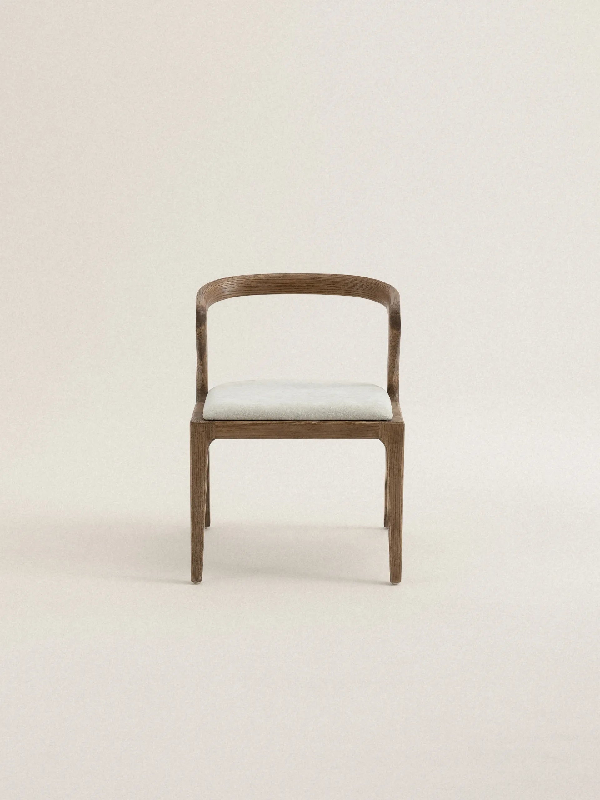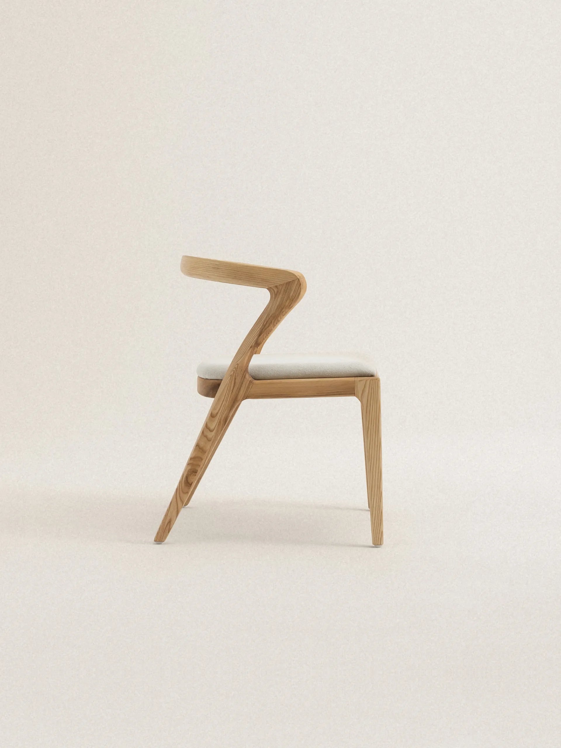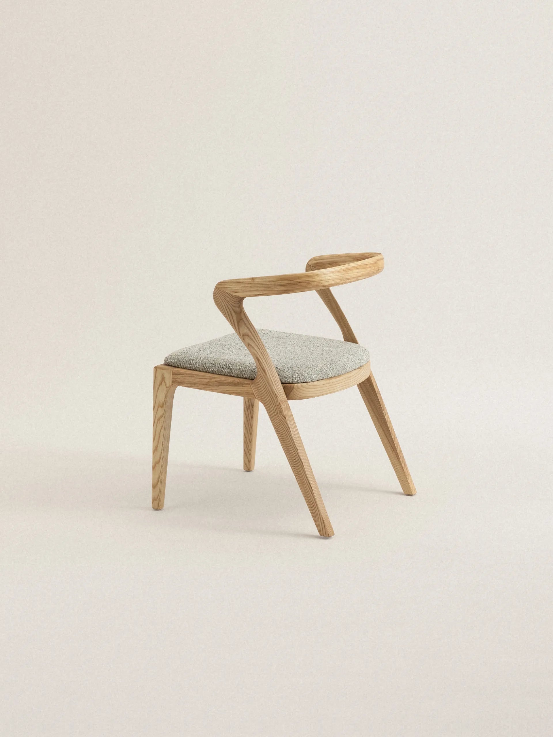 Vesna to krzesło, które definiuje przestrzeń swoją charakterystyczną sylwetką. Drewniane oparcie o asymetrycznej formie tworzy wyrazisty kontrast z miękkim, tapicerowanym siedziskiem, a cała kompozycja przypomina spontaniczny gest zatrzymany w drewnie. Każda linia wydaje się być wyrzeźbiona z myślą o ergonomii, ale też o estetycznej ekspresji – to mebel, który równie dobrze służy ciału, co oku.